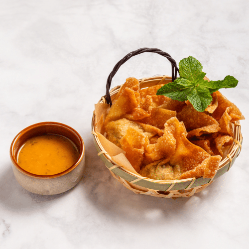 Zarte, hausgemachte Wan Tan Teigtaschen, gefüllt mit einer saftigen Mischung aus Fleisch und Gewürzen. Serviert mit einer leichten Dipsauce, die das Gericht perfekt abrundet.